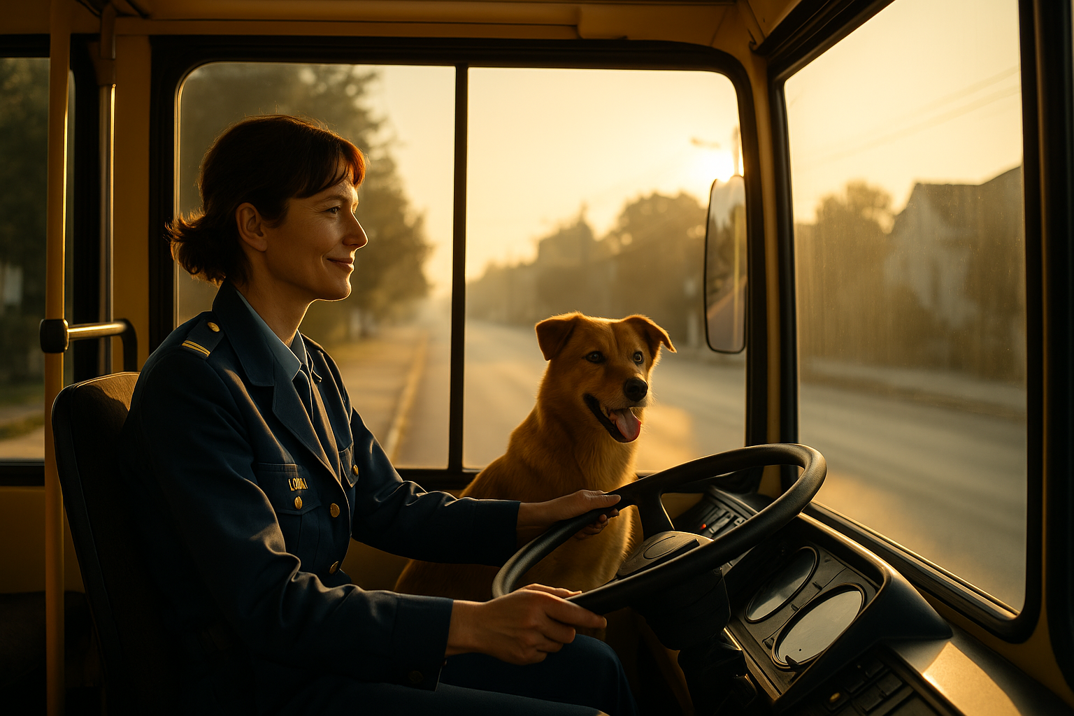 몇 주가 지나자, 도시는 조금 더 따뜻해진 듯했다. 승객들도 이제 알았다. 그 충직한 개가 더 이상 혼자가 아니라는 것을. 버스가 들어올 때마다 맥스가 꼬리를 흔들며 옆을 뛰어다녔고, 로라는 출근 전 늘 그에게 다가가 귀를 쓰다듬어주곤 했다. 두 존재는 이제 떼려야 뗄 수 없는 사이가 되었다. 날이 추워지자 로라는 정류장에 낡은 담요를 깔아줬다. 그런데 어느 추운 아침, 차고에 도착한 그녀는 맥스가 버스 문 앞에 앉아 있는 걸 보았다. 눈이 마주치자, 마치 묻는 듯했다. “이번엔 나도 같이 가도 될까?” 로라는 잠시 망설이다가 문을 열었다. “그래, 타렴.” 맥스는 두 바퀴 빙 돌더니 조수석에 자리를 잡았다. 마치 평생 그랬던 것처럼 자연스러웠다.